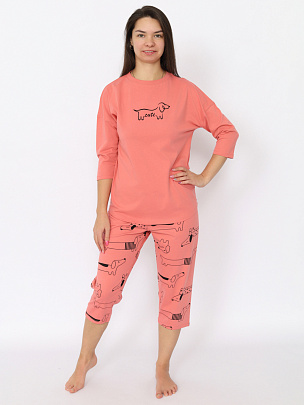 Пижама женская (джемпер, бриджи) коралловая