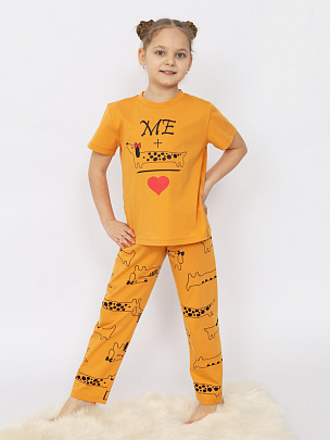 Пижама для девочки (футболка, брюки) охра