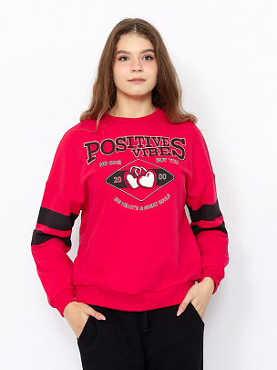 Джемпер для девочки повышенной плотности со спущенным плечем. Киперная лента с люрексом по рукавам. Перед декорирован принтом. Фигурный низ с удлиненной спинкой.