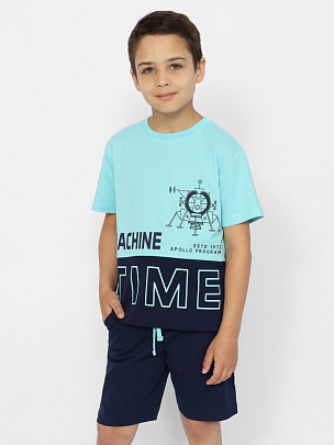Толстовка с длинными рукавами и притачным поясом по низу. Манжеты и пояс выполнены из полотна с добавлением эластана. Перед с отрезной вставкой контрастноко цвета, которая переходит в воротник "Стойка". В нижней части переда расположен карман-кенгуру с декоративным принтом. Вставка переда декорирована принтом "ИДИ ВПЕРЕД. Брюки с притачным поясом и манжетами. В пояс вставлена резинка и функциональный шнур. Пояс и манжеты выполнены из полотна с эластаном.