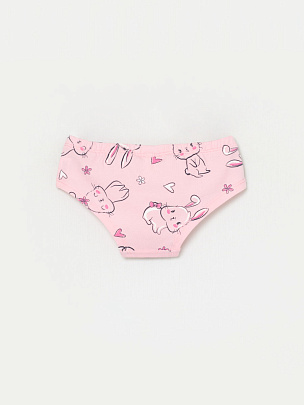 Трусы из набивной кулирки с эластаном. Верх трусов и проймы ножек обработаны плоским швом вподгибку. По верху одновременно проложена резинка.